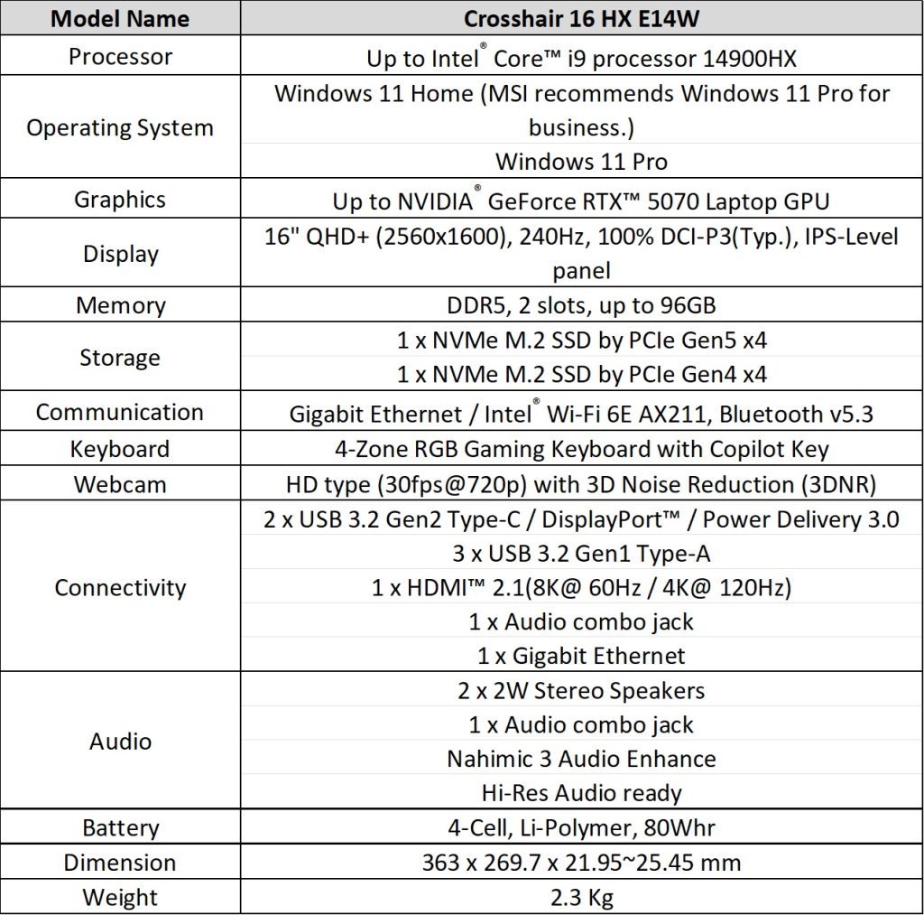 Similar to the Max HX, this model provides high performance with upgraded thermal solutions and a 2.5K 240Hz OLED display.