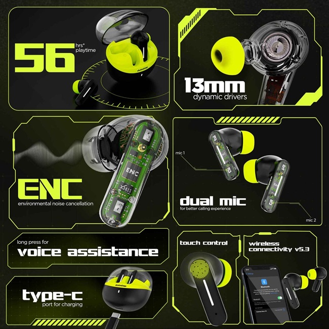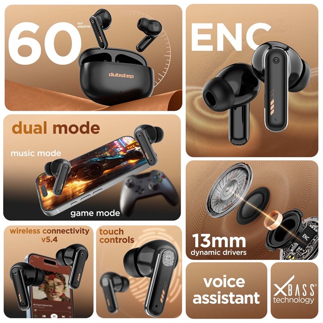 The Dubstep Buzz X8 is built for all-day use and also delivers up to 56 hours of playtime. It features 13mm dynamic drivers, ENC-enabled dual microphones, touch controls, voice assistant support, and Bluetooth v5.3 connectivity, making it suitable for everyday listening.
