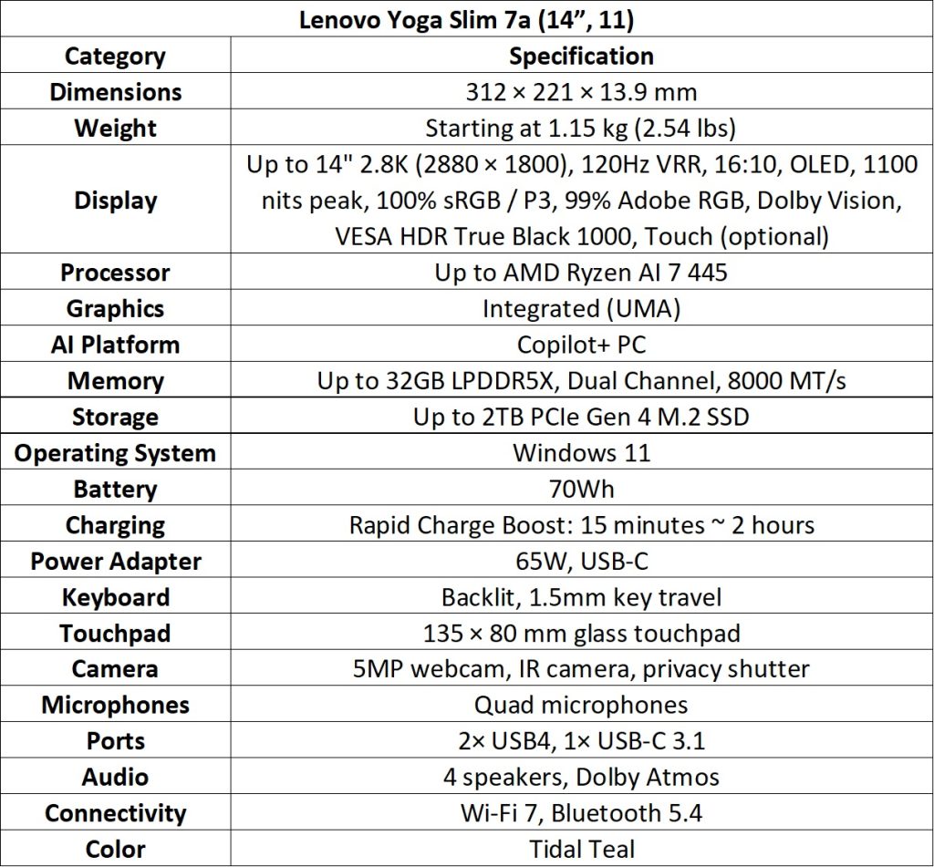 - Yoga Slim 7a (14”, 11): Select markets only