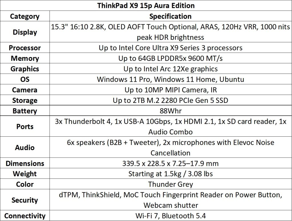 - ThinkPad X9 15p Aura Edition – Q1 2026, Starting at USD 1,999 (Rs. 1,79,815 approx.)