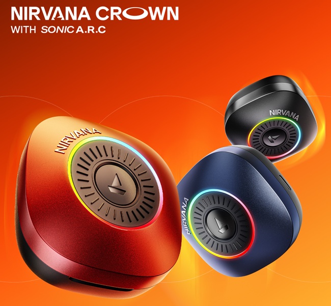 boAt has launched the Nirvana Crown, a TWS earbud with a charging case featuring Sonic A.R.C (Advanced Rotational Crown) technology. The case integrates a rotatable control dial with haptic feedback, a multifunctional button, and customizable RGB LEDs. The multifunctional button can be used to answer calls and control music playback, while the rotational dial allows volume adjustment and supports configurable haptic intensity levels (low, medium, high).