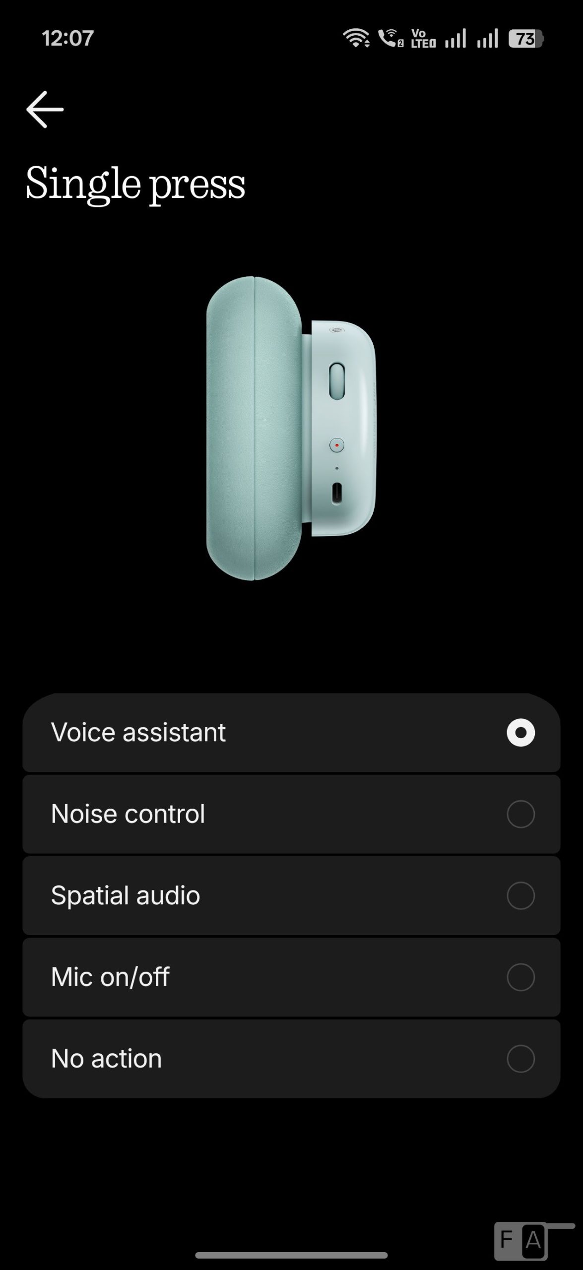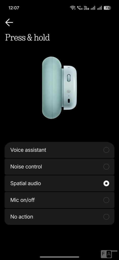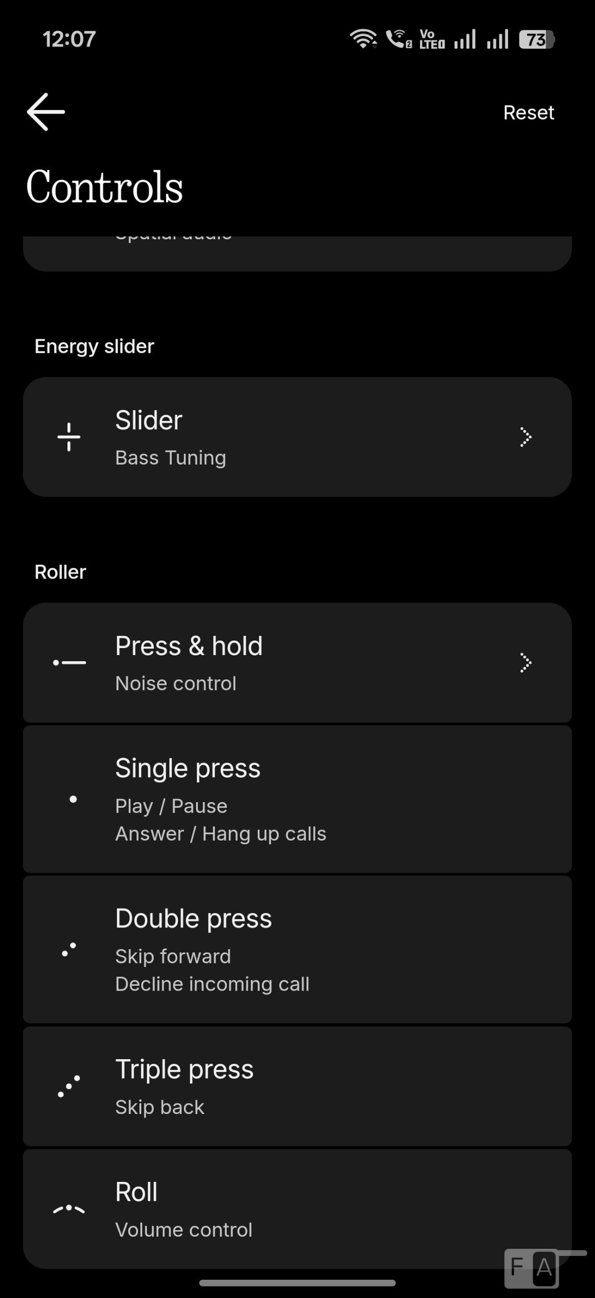You can customise these with the Nothing X app on Android and iPhone. You can change actions for roller single press and press and hold, change the slider to control treble from bass and also customize single press and double press actions of the function button.