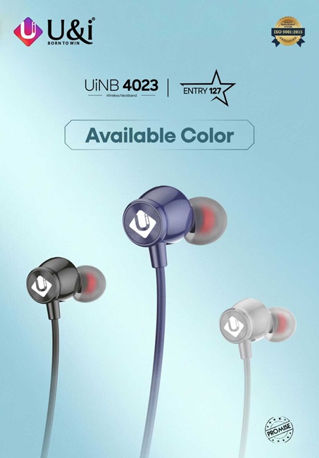UiNB 4023 provides 200 hours of standby, a low-latency gaming mode, magnetic earbuds, playback controls, and an LED indicator. Available colours are Blue, Black, and Silver.