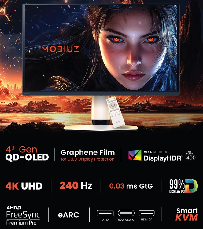 - 26.5-inch 4th-Gen QD-OLED, 4K UHD, 240Hz, 0.03ms GtG