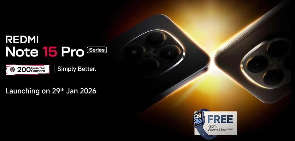The REDMI Note 15 Pro series will be sold on Amazon.in, in addition to mi.com and offline stores, after the launch. The teaser also says REDMI Watch Move will be free as a part of launch offer.