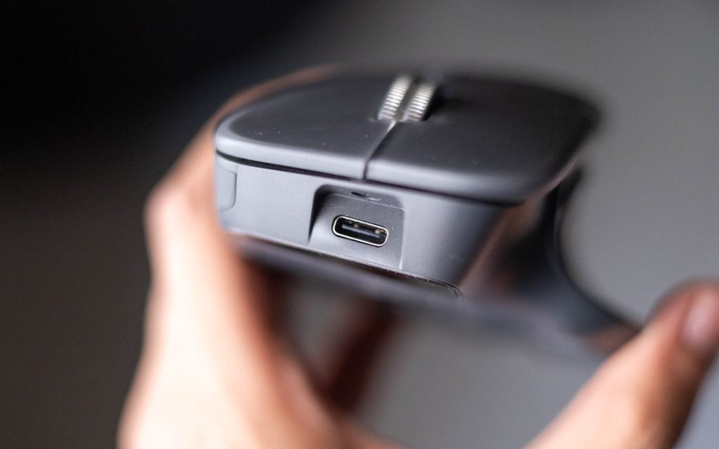 Charging is handled via the front USB-C port and it supports fast charging, delivering up to three hours of use from just a one-minute charge. This comes in handy when the mouse runs out of power and you need to get back to work quickly. The MX Master 4 can also be used while charging, which is always a welcome convenience.