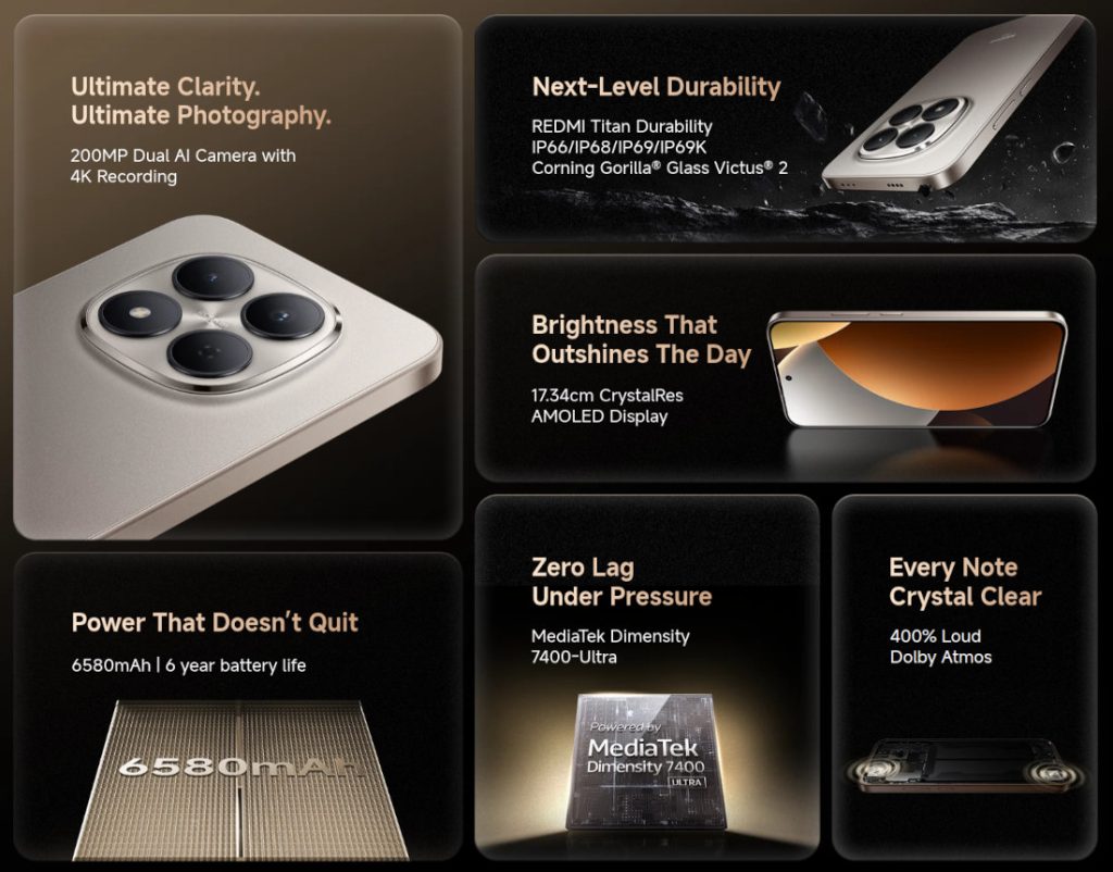 - REDMI Note 15 Pro 5G: Powered by the MediaTek Dimensity 7400 chipset.