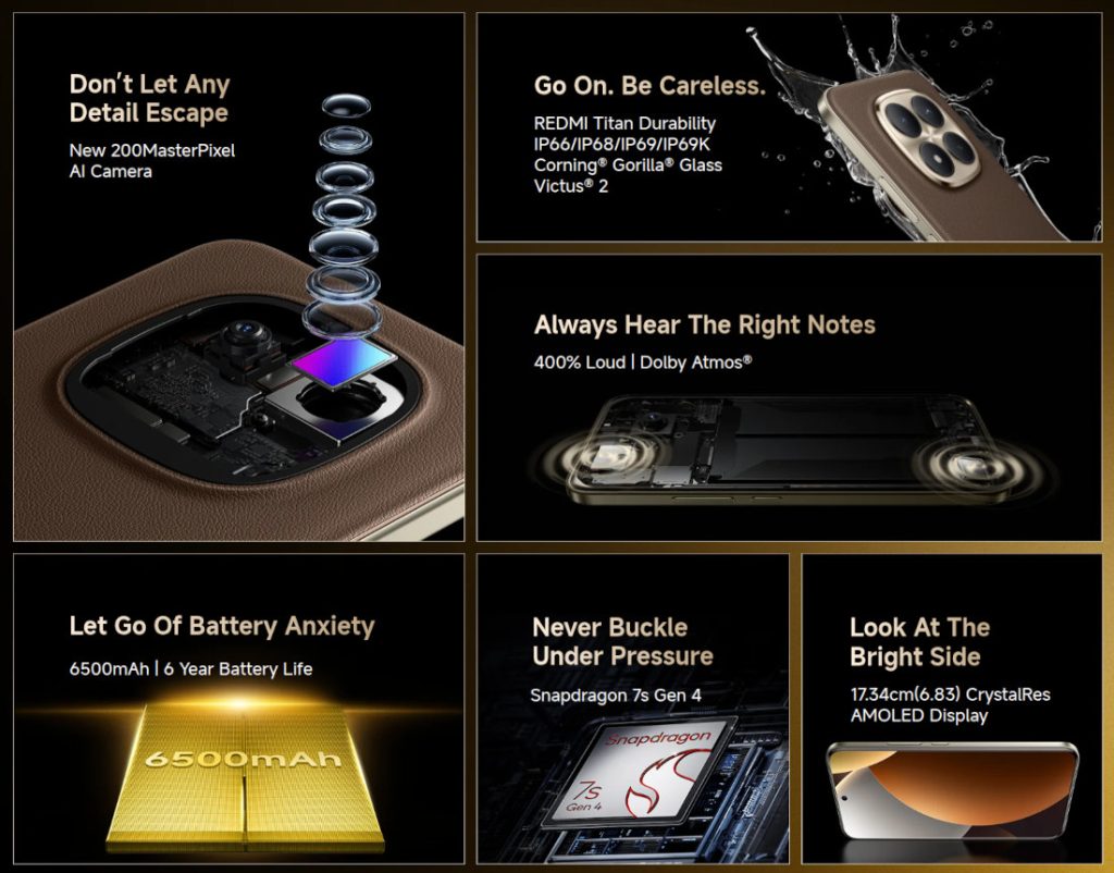 A primary focus of the new series is structural reinforcement and battery endurance. The premium REDMI Note 15 Pro+ 5G utilizes a 6500mAh Silicon–Carbon (SiC) battery with 100W fast charging.