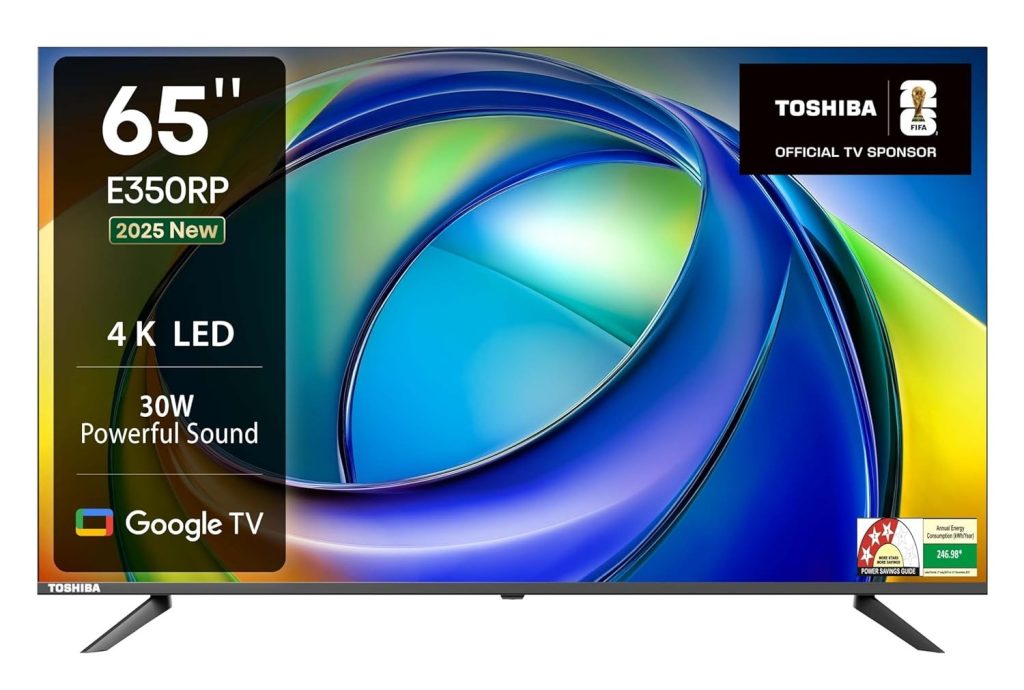 - TOSHIBA 164 cm (65 inches) E350RP Series 4K Ultra HD Smart LED Google TV for Rs. 43,999