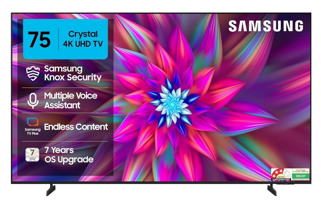 - Samsung 189 cm (75 inches) Crystal 4K Ultra HD Smart LED TV for Rs. 77,990 (incl. Rs. 2000 coupon)