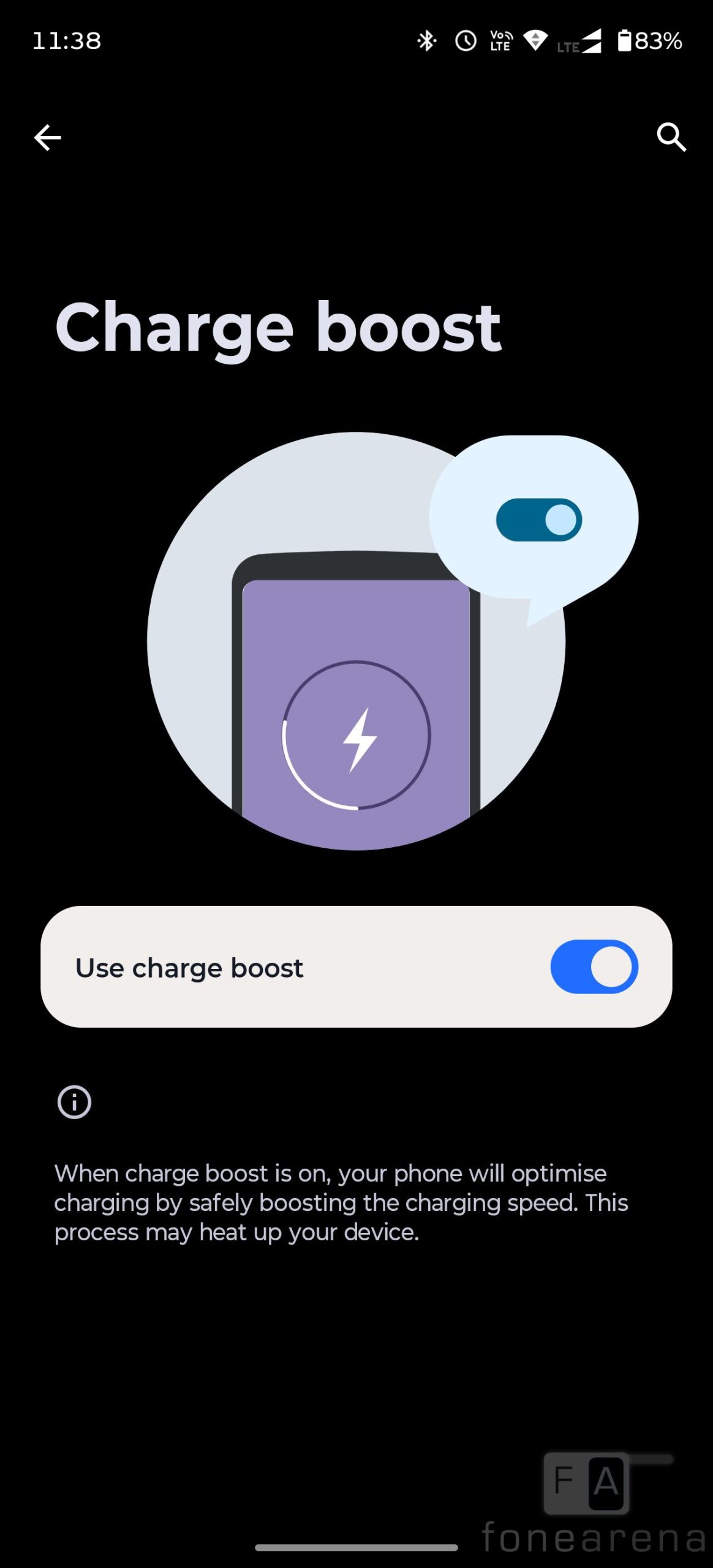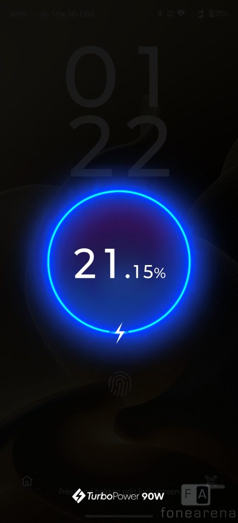 It has 90W fast charging. It takes about 45 minutes to charge the phone fully using a bundled charger, and 50% charge takes around 15 minutes. The phone also has 50W wireless charging, which other phones in the price range lack. There is also reverse wireless charging.