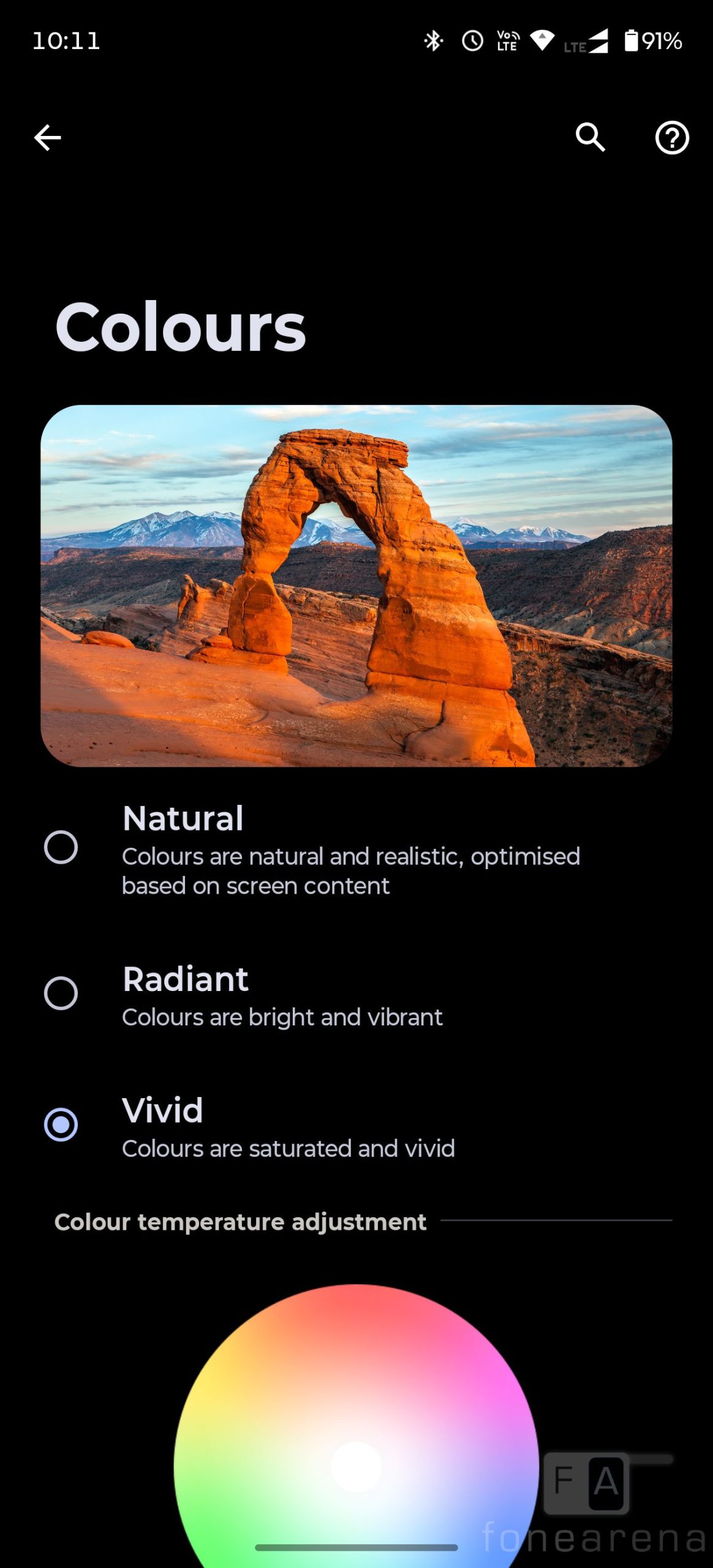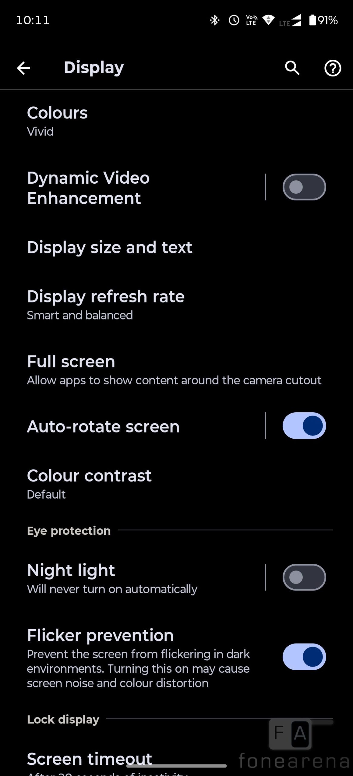 Under the display options there are different options to adjust colours from Natural, Radiant and Vivid colors. There is flicker prevention option in the settings. It doesn’t have notification LED, but there is Always on display.