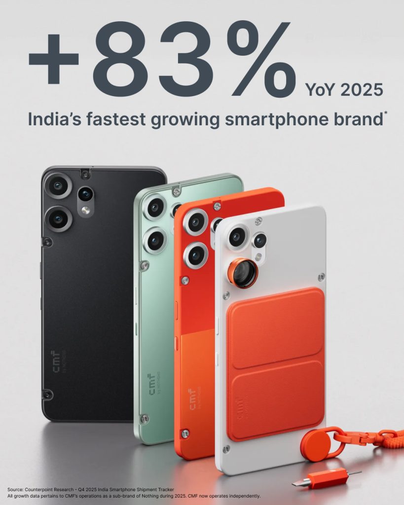 CMF recorded 83% YoY growth in 2025, making it the fastest-growing brand in its segment, with 59% YoY growth in Q4. The brand now operates as a legally incorporated entity in India, reinforcing the country as its primary operational base.