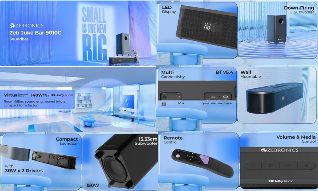 Zebronics has expanded its home audio portfolio with the launch of two soundbar systems — the Juke Bar 9300C and the ZEB-Juke Bar 9010C.