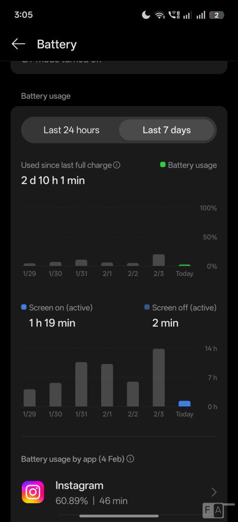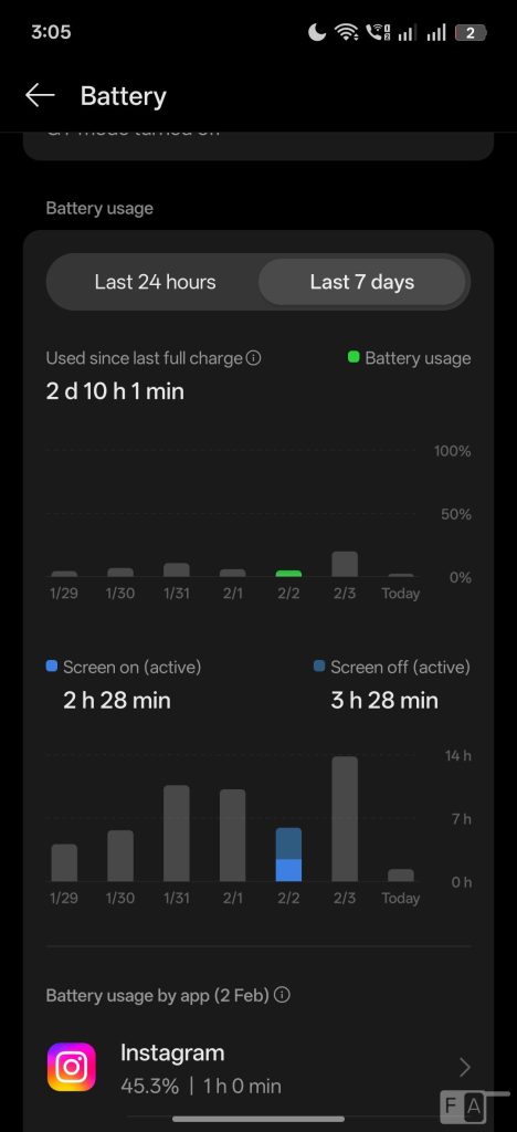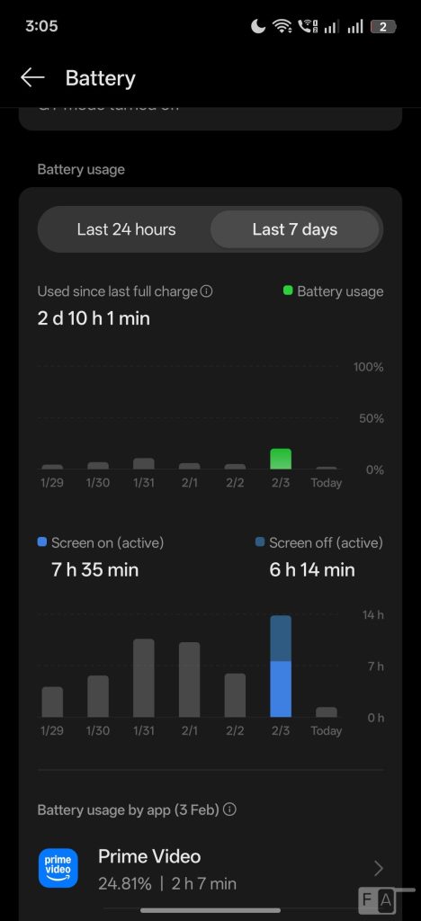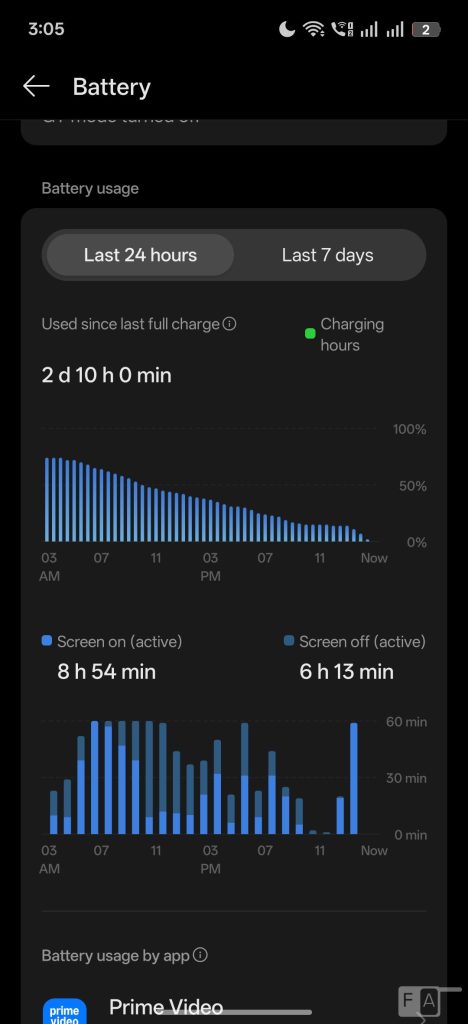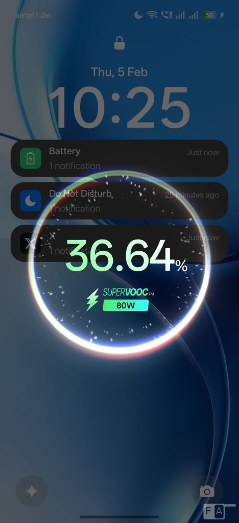 I got over 10 hours of screen on time with 2 and half days of heavy use, on mixed Wi-Fi, and 5G in 144Hz, which is impressive. This has 80W SuperVOOC Charge, same as most mid-range realme phones. It can charge up to 50% in slightly over half an hour and up to 100% in less than one and half hours with the bundled 80W charger, which is good.