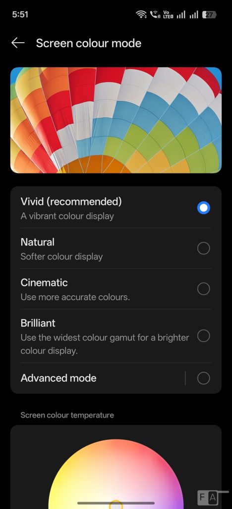 It offers good colour output since it has 100% DCI-P3 color gamut. You can select from vivid, Natural, Cinematic, and Brilliant screen colour modes. The phone has AI eye comfort function, and DC Dimming. The phone also has HDR 10 support, which works for YouTube, and Netflix.