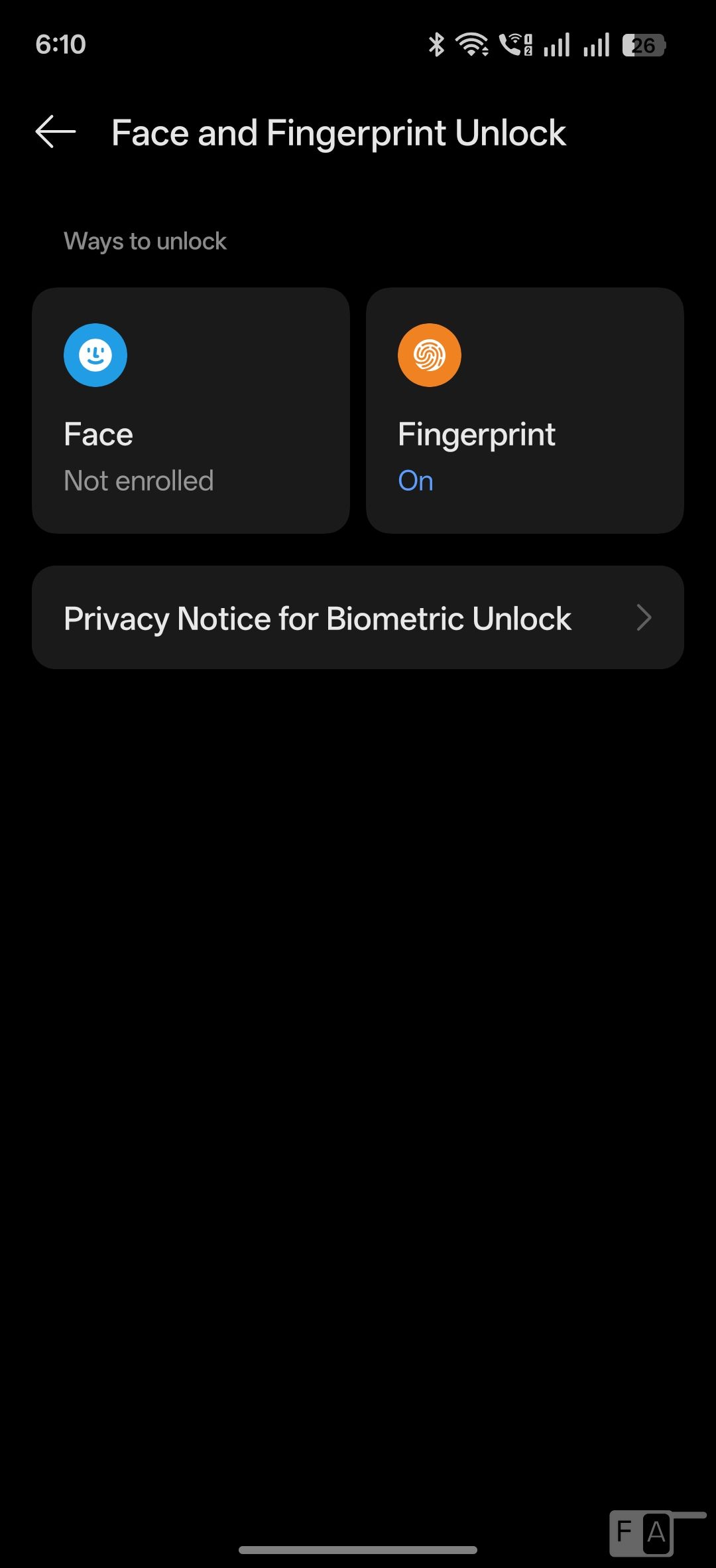 Fingerprint sensor and Face unlock