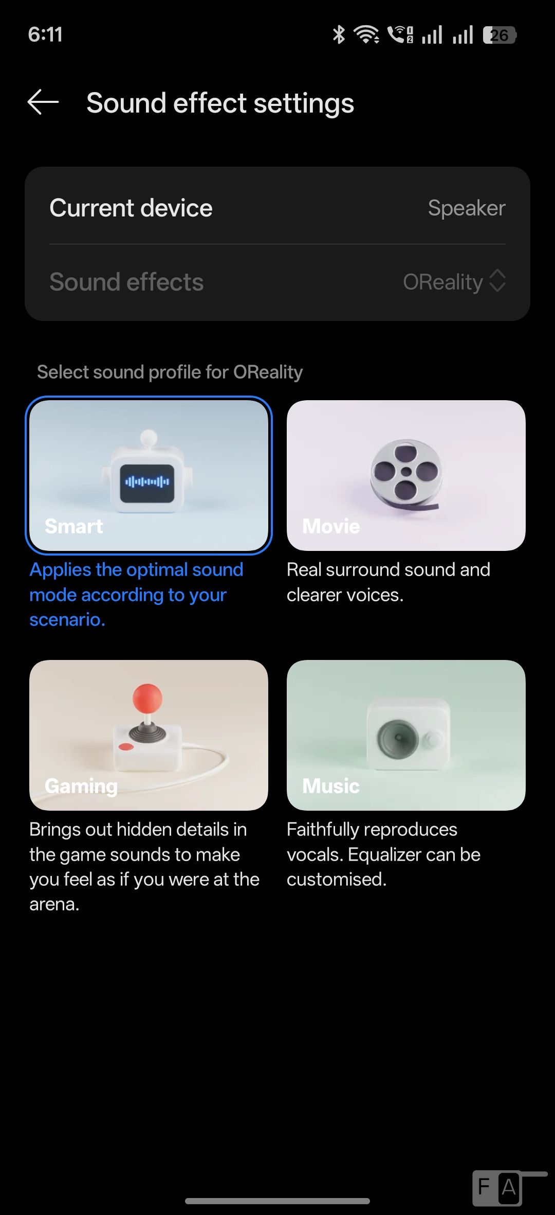 YouTube Music is the default Music Player. It has customizable Smart, Movie, Game and Music modes, but doesn’t have Dolby Atmos. It doesn’t have FM Radio support. Audio through the mono speaker is decent, but wish it had stereo speakers. Audio through earphones is good as well.
