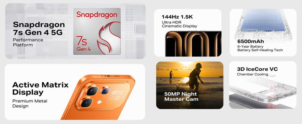- Longevity: The teaser explicitly mentions “6-Year Battery” lifespan and “Battery Self-Healing Tech,” suggesting advanced chemical optimizations that prevent battery health degradation over long-term use.