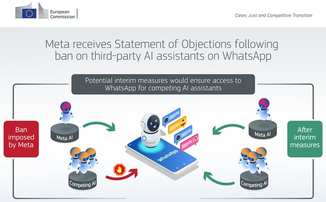 The European Commission has informed Meta of its preliminary view that the company may have breached EU antitrust rules by excluding third-party artificial intelligence (AI) assistants from WhatsApp. The move escalates an investigation launched in late 2025 and could lead to interim measures aimed at preventing potential harm to competition while the broader probe continues.