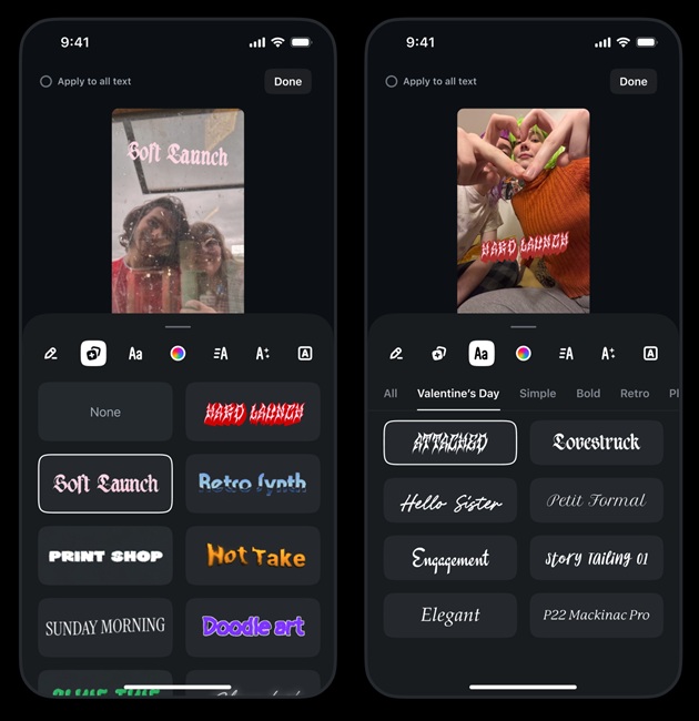 - New fonts and text effects: Valentine’s-themed fonts and animated text styles can be applied to Stories and Reels.