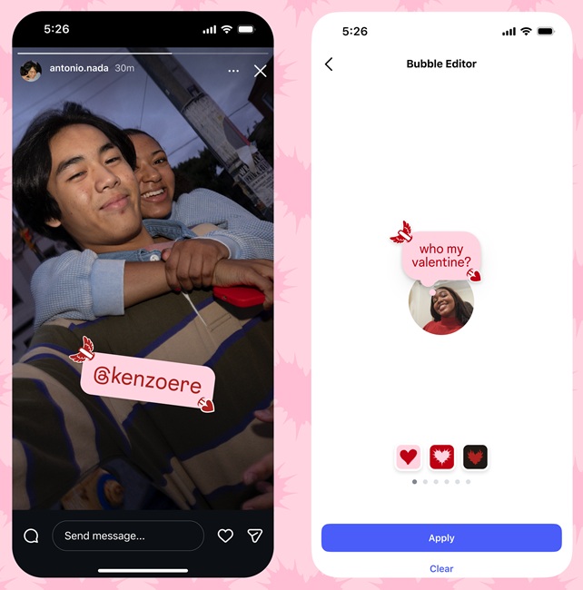 Instagram and Edits introduced a set of themed creative features across Stories, Reels, Notes, and direct messages for Valentine’s Day 2026. The update includes seasonal fonts, text effects, sticker frames, interactive phrases, sound effects, and playback controls.