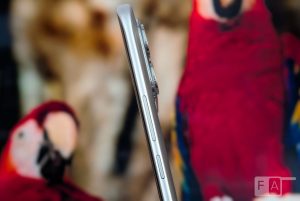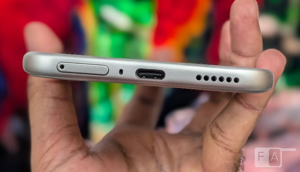 Coming to button placements, the power button is present on the right along with volume rockers. You can also see the customizable shortcut key in green color on the right. The dual SIM slot, primary microphone, USB Type-C port, and loudspeaker grill are present on the bottom. The secondary microphone is on the top along with the IR blaster, and you can also see the speaker vent.