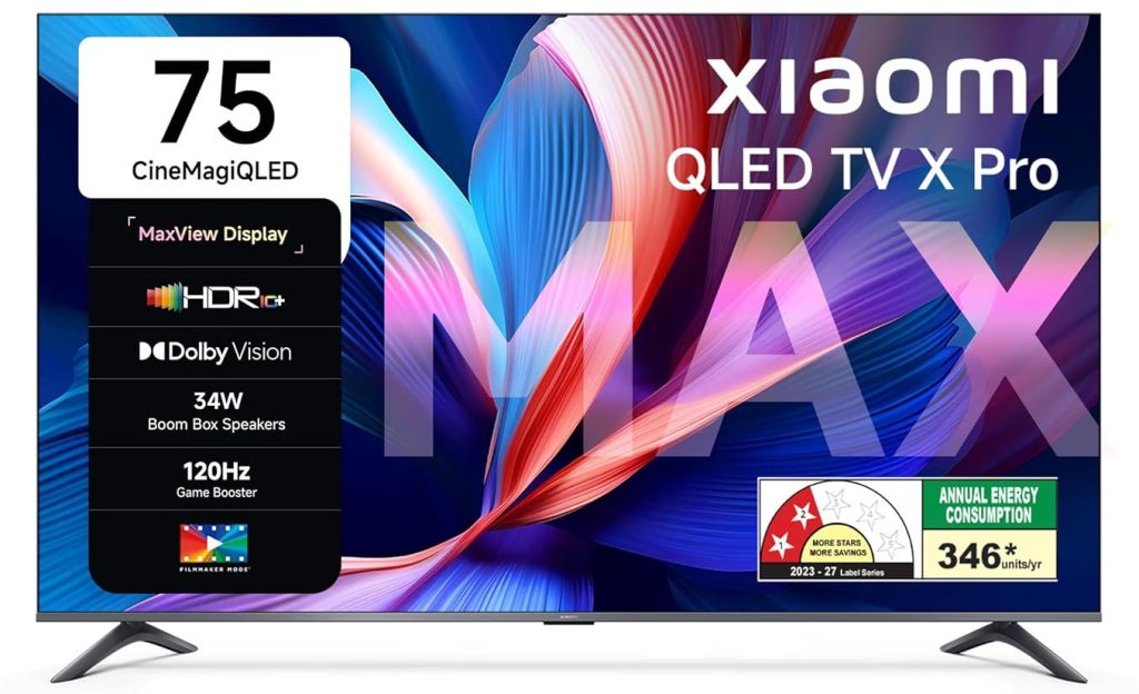 Xiaomi has launched the Xiaomi X Pro QLED Series (2026) 75″ in India. The TV features 4K (3840 × 2160) CineMagiQLED panels with 178° viewing angles and DLG 120Hz refresh rate. The display includes HDR10+, Dolby Vision, Filmmaker Mode, and Vivid Picture Engine 2, covering the DCI-P3 colour gamut with 1.07 billion colours.