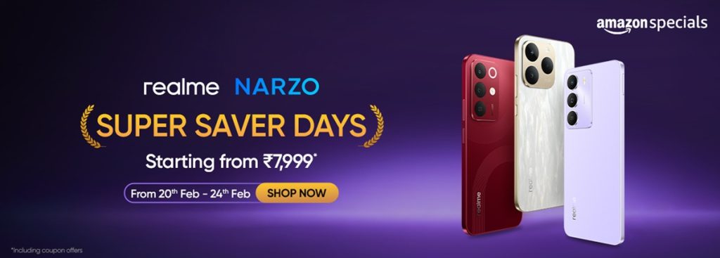 realme India has announced limited-time offers on its Narzo Series starting today, featuring bank discounts and platform-specific coupons as part of the Narzo Super Saver Days.