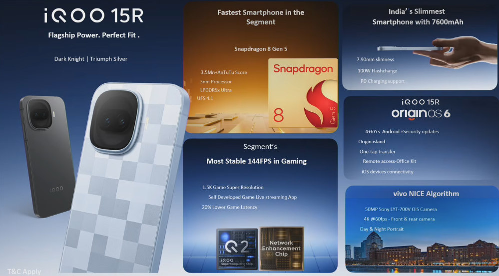 iQOO 15R with 6.59″ 1.5K 144Hz AMOLED display, Snapdragon 8 Gen 5, IP69 ratings, 7600mAh battery launched in India starting at Rs. 44,999