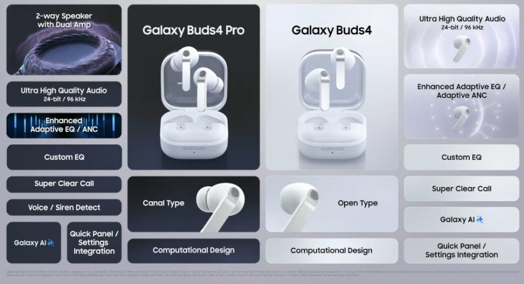 • Galaxy Buds4: Open-fit design prioritizing comfort