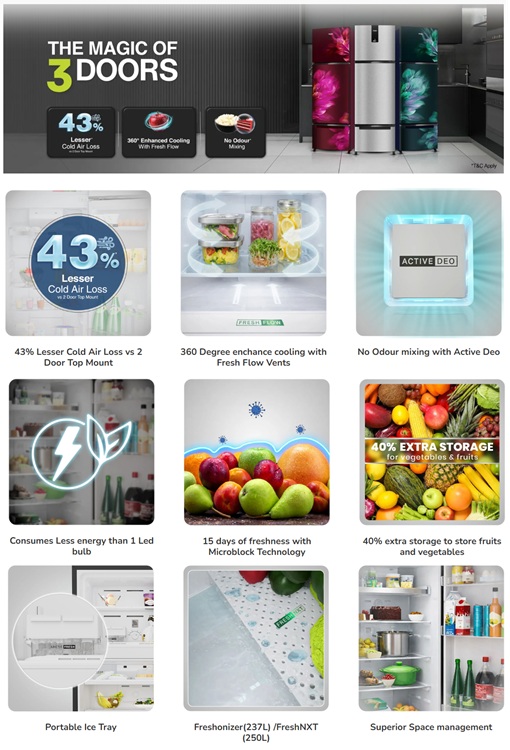 Whirlpool of India Limited has introduced the Protton NXT 3 Door refrigerator range in India. The new series features a three-compartment layout focused on cooling efficiency, organised storage, hygiene support, and energy performance.