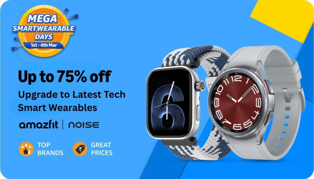 Amazon India is hosting a Mega Smartwearable Days sale featuring a wide selection of smartwatches and smartwearables from top brands, including Apple, Samsung, boAt, Amazfit, and more. The sale offers up to 75% off on smart wearables and will run until the 4th of March, 2026.
