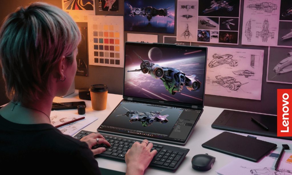 The Yoga Book Pro 3D Concept is designed for digital creators and 3D professionals. Its glasses-free 3D display enables users to view depth, form, and spatial relationships directly on screen. Main features include: