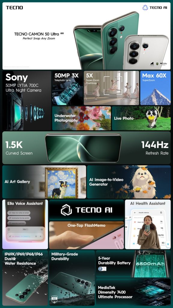 TECNO has silently introduced CAMON 50 Ultra 5G, the latest model in the CAMON 50 series after teasers. Positioned as a device focused on mobile photography and durability, it combines high-resolution imaging sensors with a suite of artificial intelligence tools and rugged build.