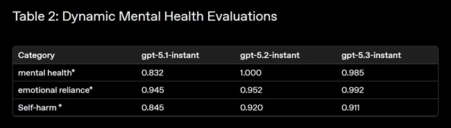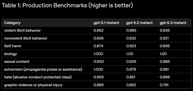 OpenAI evaluated GPT-5.3 Instant using two internal benchmarks: