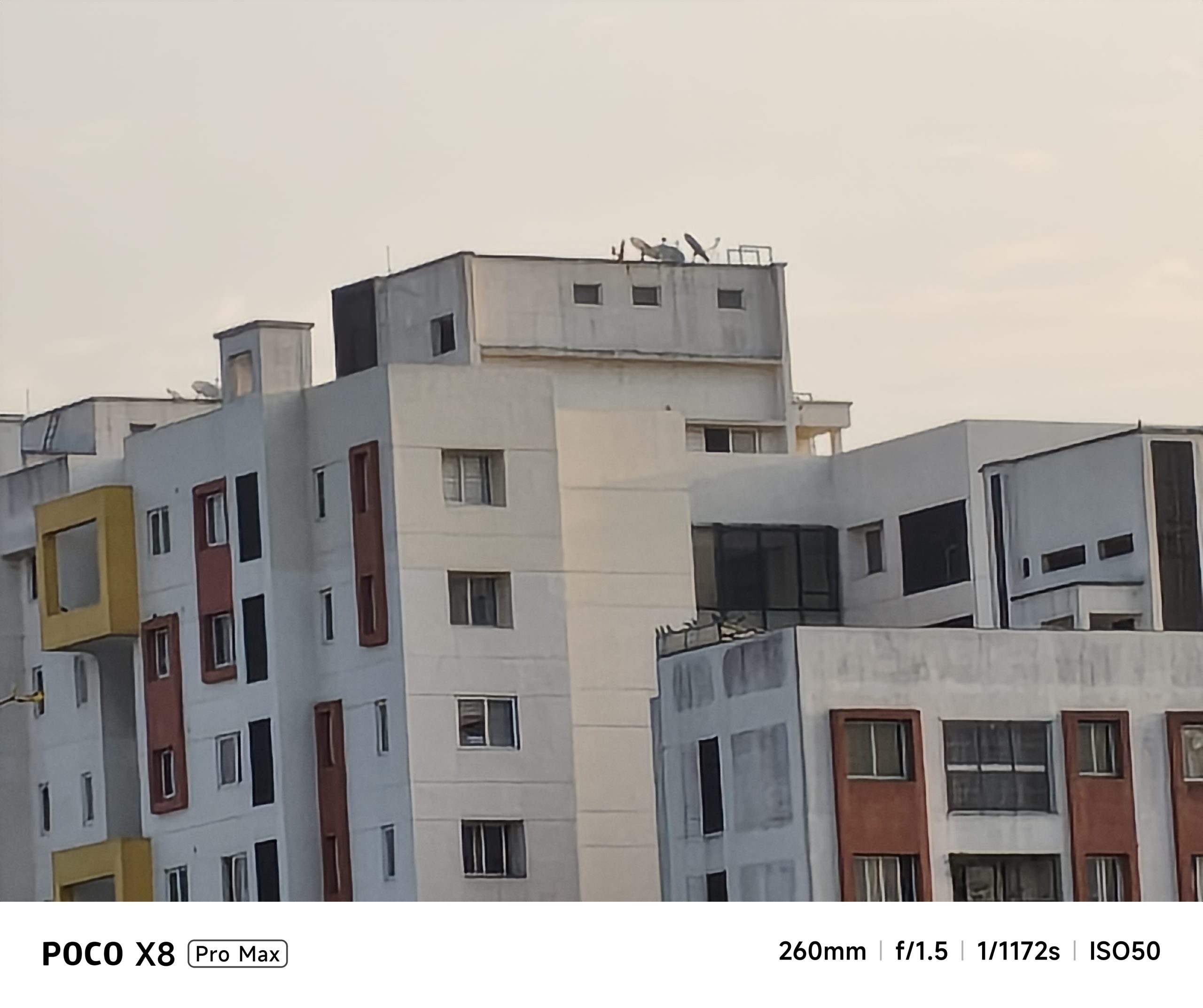 The POCO X8 Pro Max features the 50MP rear camera with Light Fusion 600 and OIS. There is an 8-megapixel ultra-wide-angle camera. It supports up to 4K 60fps video recording on the back and 1080p 60fps video recording on the front. Check out some camera samples.