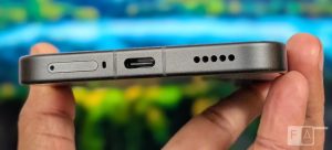 Coming to the button placements, the volume rockers and the power button are present on the right side of the phone. The dual SIM slot, loudspeaker grill, primary microphone, and USB Type-C port are present on the bottom. It doesn’t have a microSD expansion slot. On the top there is a vent for the speaker, a secondary microphone, and an infrared sensor.