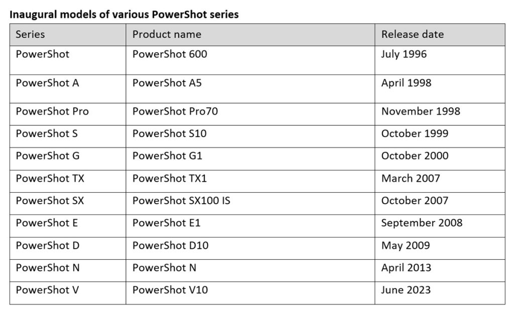 PowerShot lineup completes 30 years