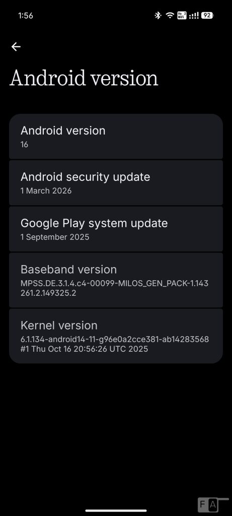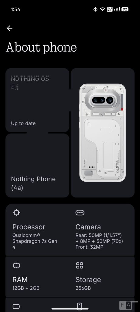 The Nothing Phone (4a) runs Android 16 out of the box, with Nothing OS 4.1 on top. It has the March 2026 Android security patch. The company has promised 3 Android OS updates and 6 years of security patches, the same as the 3a. Apart from the fonts and UI, it gives a stock Android experience.