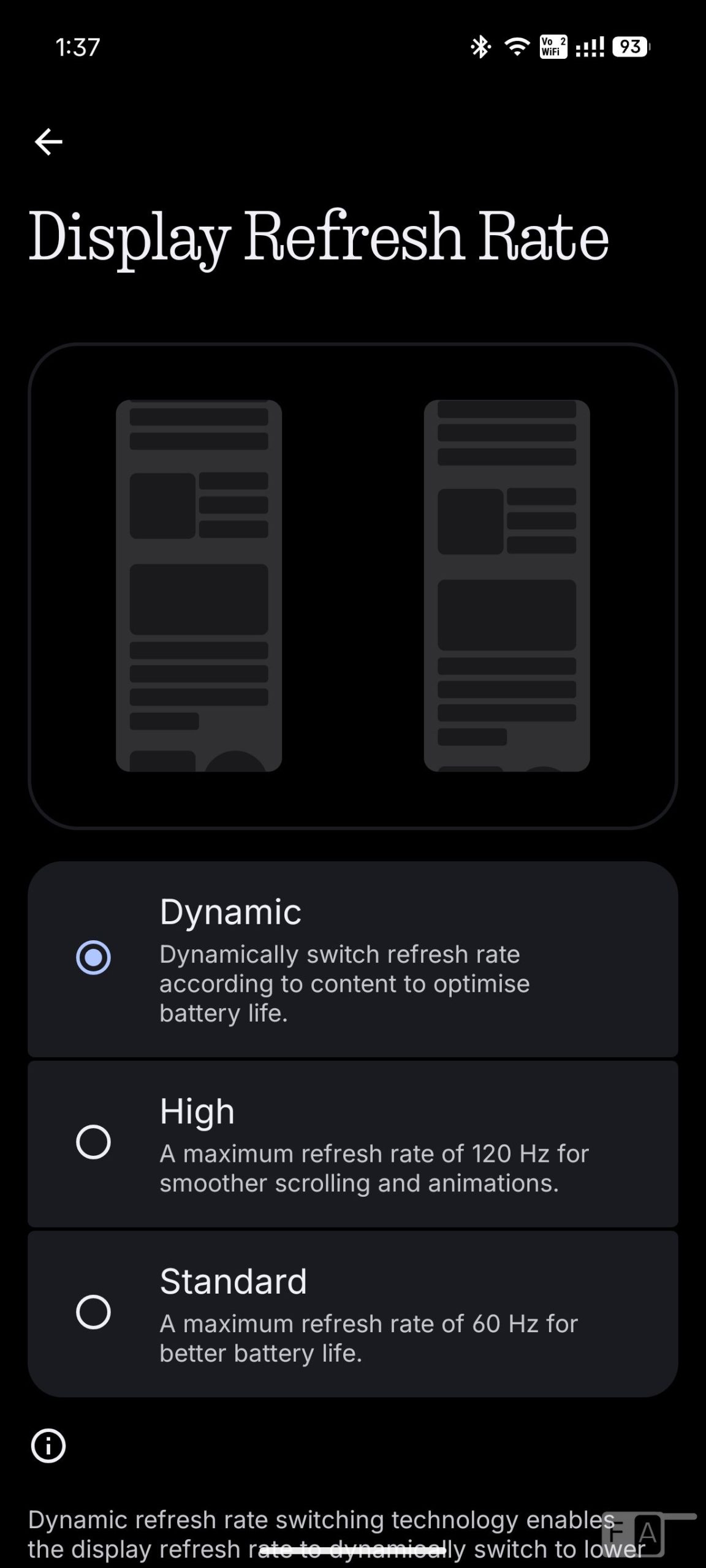 The phone has a 30-120Hz refresh rate display that can switch between 30Hz, 60Hz, 90Hz, and 120Hz according to the content. It has a 480 Hz touch sampling rate and a 2500 Hz touch sampling rate when in Gaming Mode. It offers a buttery smooth user experience, especially when you are scrolling through the UI and when gaming. It also has HDR 10+ support, which works for YouTube.