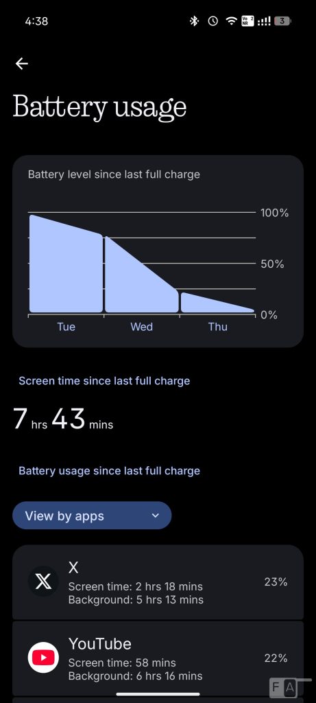 Coming to the battery life, the phone packs a 5400mAh (typical) built-in battery, compared to 5000mAh in the Phone (3a) series. Thanks to the opitimization, it lasts for more than a day even with heavy use on 5G. With minimal use on Wi-Fi, it should last for over 2 days. I got over 7 and half hours of screen on time with 2 days of use, with mixed use of mostly Wi-Fi and occasional 5G use in 120Hz.