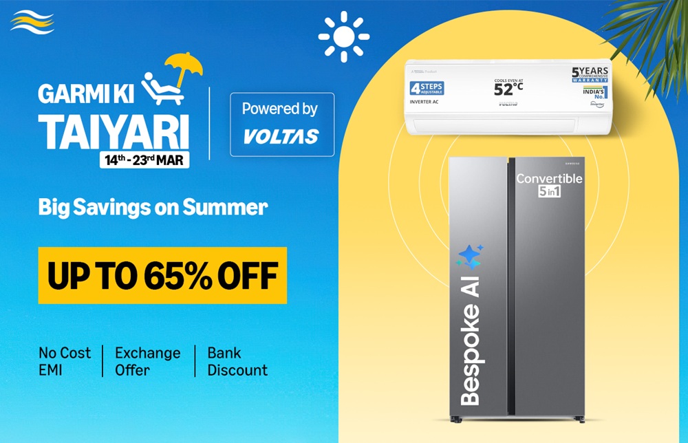 Amazon India today launched its #GarmiKiTaiyari sale, offering up to 65% off on air conditioners and refrigerators from leading brands including Haier, Samsung, Voltas, Lloyd, and Godrej.