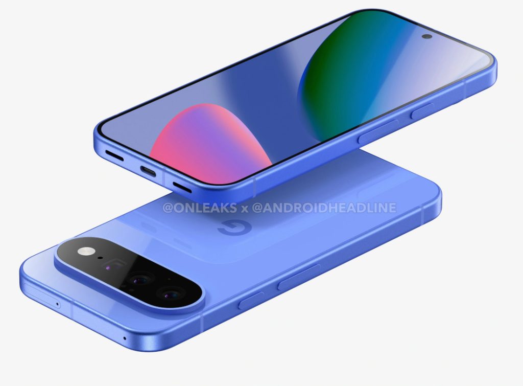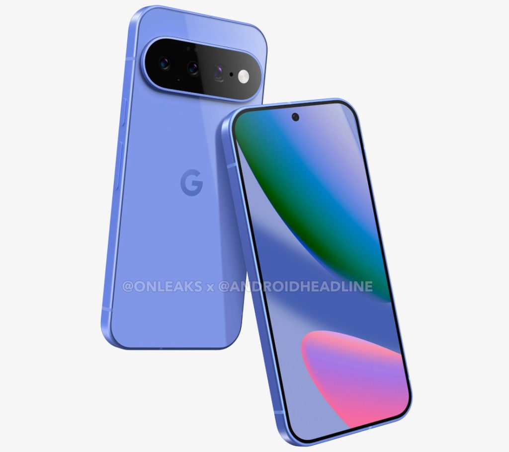 Google Pixel 10 has surfaced in the first set of renders, thanks to @OneLeaks. This shows a familiar design with flat sides, but the camera bar is bigger but thinner even with a similar triple rear camera setup.