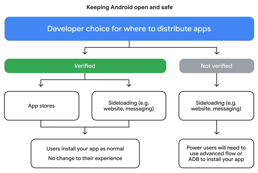 Android supports app distribution through Google Play and sideloading. According to Google’s analysis, malware instances are significantly higher in apps installed from sideloaded sources compared to Play Store distribution. The verification system is intended to reduce repeated misuse by unidentified developers.