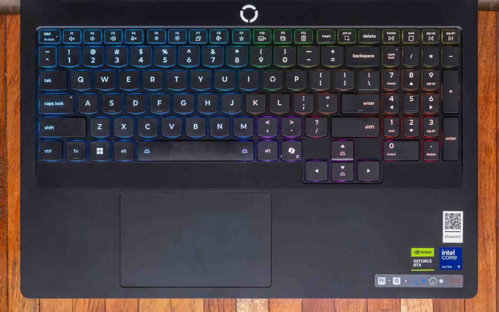 The Legion Pro 7i comes equipped with Lenovo’s TrueStrike keyboard, and it is one of the better keyboards you will find on a gaming laptop today. It features 1.6mm of key travel and a 0.3mm dish on each keycap. The layout is sensible, with good spacing between keys, and the per-key RGB lighting can be configured with various presets and effects.