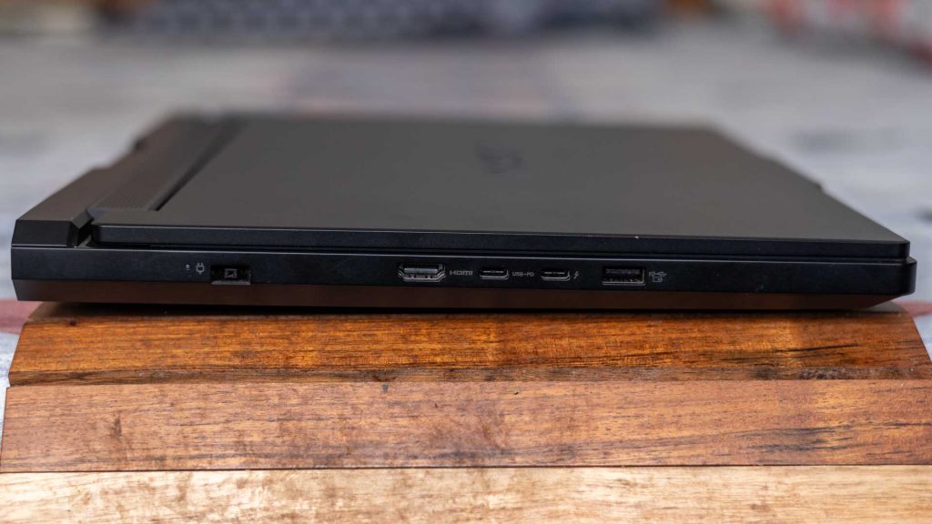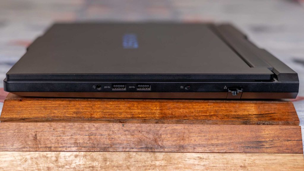 Given the laptop’s size, it should come as no surprise that the Legion Pro 7i is well-equipped on the port front. The left side houses a DC-in power port, HDMI 2.1, a USB-C with Power Delivery charging up to 140W, a Thunderbolt 4 port with DisplayPort 2.1 support and up to 40Gbps data transfer, and a USB 3.2 Gen 2 Type-A port. The right side carries two USB 3.2 Gen 1 Type-A ports, a 3.5mm audio jack, an RJ45 ethernet port, and the physical eShutter button for the webcam. The absence of an SD card reader is a missed opportunity, particularly for a laptop of this size where there is no shortage of room to include one.