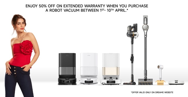Dreame is offering a 50% discount on a one-year extended warranty for robotic vacuum cleaners. The offer is valid from April 1 to April 10 (one week) and is available exclusively via the Dreame India website.