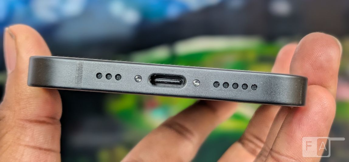 You can also see the antenna cutouts. On the bottom there is a USB Type-C port. You can see speaker grills and the microphone port on either sides of the port. The phone has IP68 water resistance.