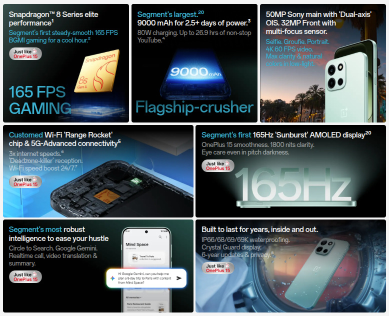 Out of the box, the phone runs on OxygenOS 16. OnePlus has committed to providing 4 major Android OS updates and 6 years of security patches. It will be available in three colors: Quick Silver, Fresh Mint, and Pitch Black.